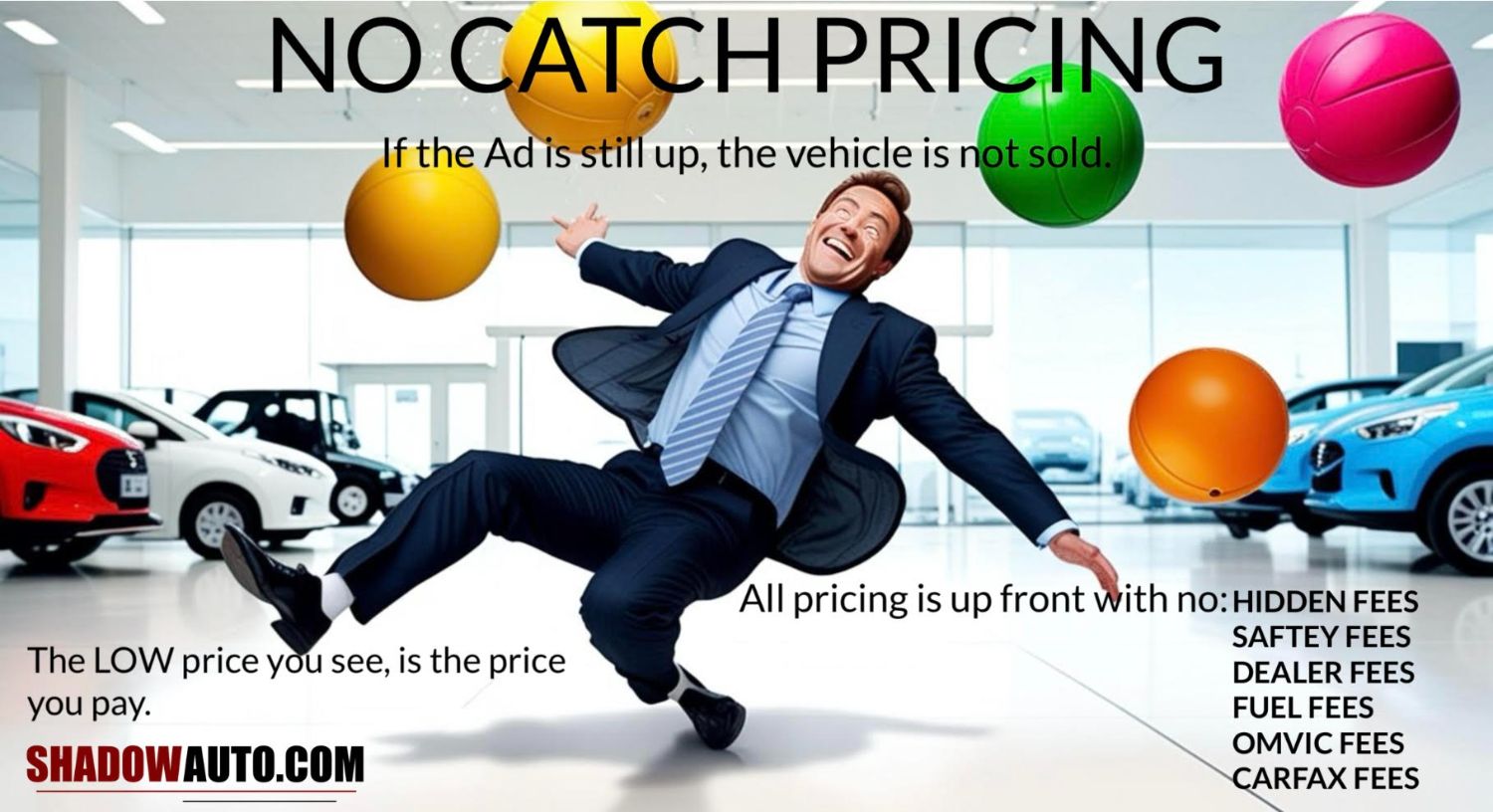 NO CATCH PRICING: AT SHADOW AUTO, ALL PRICING IS UP FRONT WITH NO HIDDEN FEES, NO EXTRA COST FOR SAFETY, & NO CATCHES OR SURPRISES. WE BELIEVE IN HONEST PRICING RIGHT FROM THE START. THE PRICE YOU SEE IS THE PRICE YOU PAY (PLUS HST & LICENSING)